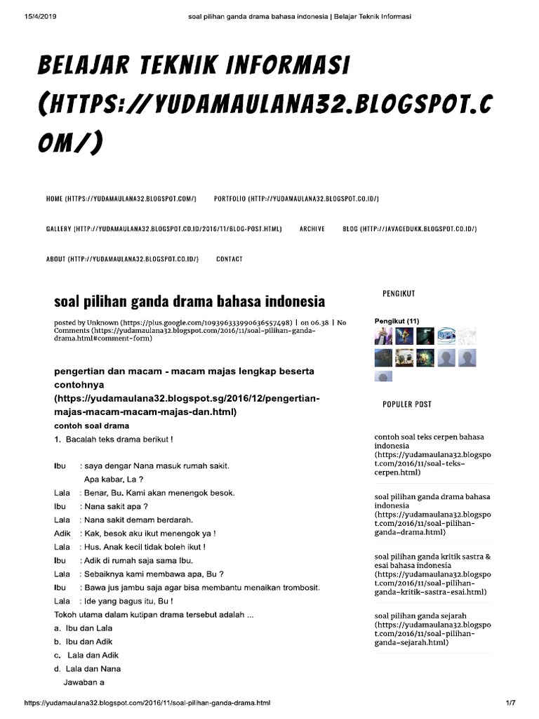 Contoh Soal Teks Drama Pilihan Ganda Dan Jawabannya ...