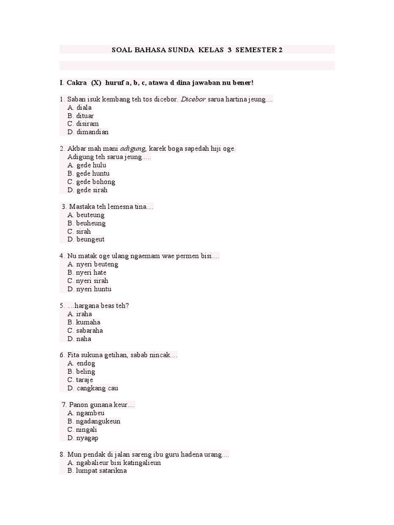 Jawaban pancen 8 bahasa sunda kelas 8. Oleh admin diposting pada 5 april 2020 …1 lengkap bangsoal soal. Soal uas bahasa indonesia =url>selanjutnya</a> Soal uas bahasa indonesia kelas 3 sd semester 1 (ganjil) dan kunci jawaban keterangan soal : Perangkat pembelajaran basa sunda basa sunda sd mi kelas 6 pdf