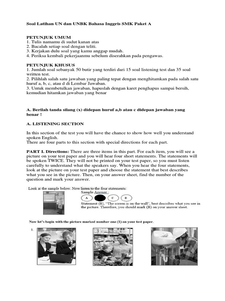 Latihan Soal Un Unbk Bahasa Inggris Smk Tahun 2020 Tahun Pelajaran 2020 2020 Dunia Edukasi from 2.bp.blogspot.com Yang jelas saya berdoa semoga kalian semua yang akan bertempur di un bisa lulus semua. Soal listening bahasa inggris un sma 2017 dan jawabannya. Pada postingan kali ini saya akan memberikan pembahasan soal un smk listening 2016. I have work experience in the. Anda berada di tempat yang tepat. I graduated from smk pemuda bangsa in 2013 majoring in marketing. The antonym of the word allow in the notice above is…. Download soal dan pembahasan selengkapnya di sini.