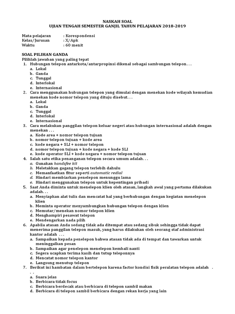 Soal dan jawaban korespondensi dalam bisnis gedung ge. Soal pengantar administrasi perkantoran kelas xi bab 1 5 dan jawabannya ini alas may 22 2017. Unknown 13 maret 2019 07 44. Doc soal bab 1 kesekretarisan erys gustiana academia edu. Soal soaldan jawaban korespondensi smk kelas x semester 2.