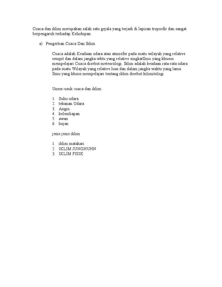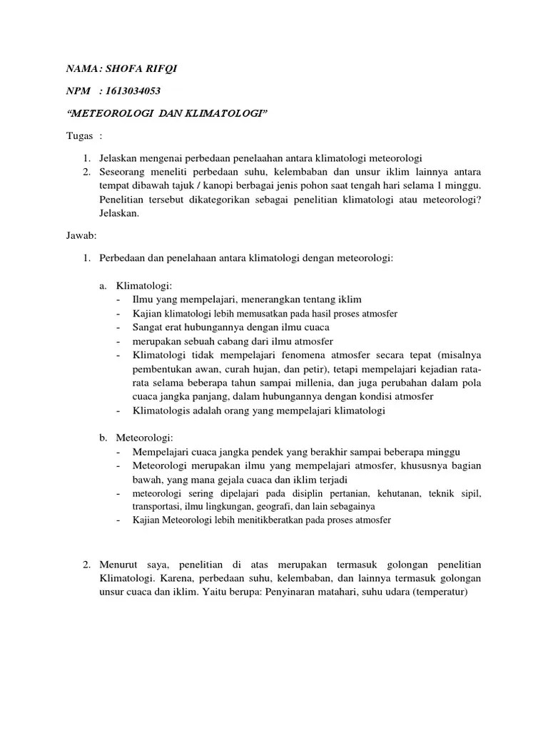 Apa Nama Ilmu Yang Mempelajari Iklim Dan Cuaca Brainly Co Id from id-static.z-dn.net Meteorologi merupakan ilmu pengetahuan yang mempelajari tentang keadaan cuaca. Iklim dan cuaca terbentuk dari unsur yang sama, diantaranya adalah penyinaran matahari, suhu udara, kelembapan udara, tekanan udara, angin, awan, dan curah hujan. Dalam kamus besar bahasa indonesia (kbbi), meteorologi di defenisikan sebagai cabang ilmu geografi yang mempelajari. Meteorologi sebagai ilmu cuaca dalam konsep sains atmosfer hanya merupakan salah satu sub ilmu saja. Ilmu penunjang geogrifi ~ geografi mempunyai kajian ilmu yang sangat luas sehingga ilmu geografi memerlukan ilmu pendukung yang erat kaitannya dengan geografi. Meteorologi ilmu yang mempelajari cuaca, yaitu keadaan atmosfer pada suatu tempat yang relatif sempit dan dalam waktu yang singkat. Ilmu yang mempelajari tentang cuaca disebut dengan meteorology. Iklim mempunyai sifat tetap, meliputi tempat yang luas, dan berlaku untuk waktu lama.