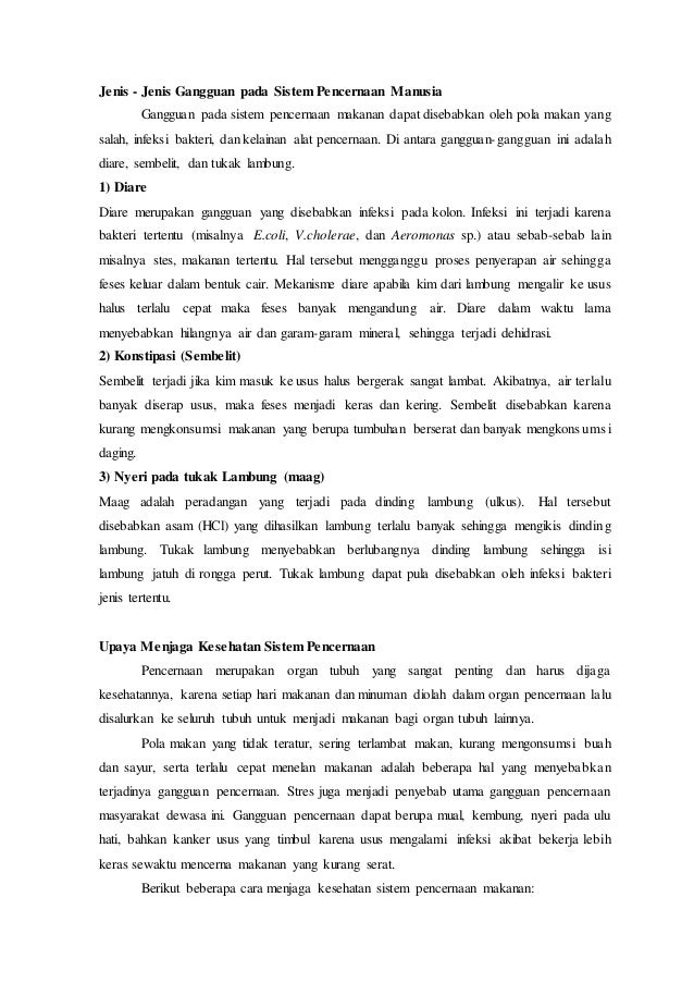 Diare dalam waktu lama menyebabkan dehidrasi. Gangguan pada sistem pencernaan 1. Fungsi penghidu pada manusia memegang peranan penting. Kata kunci :sistem pakar, diagnosis gangguan pencernaan anak, forward chaining. Jurnal volume 1, mei 2013 sistem pencernaan manusia.